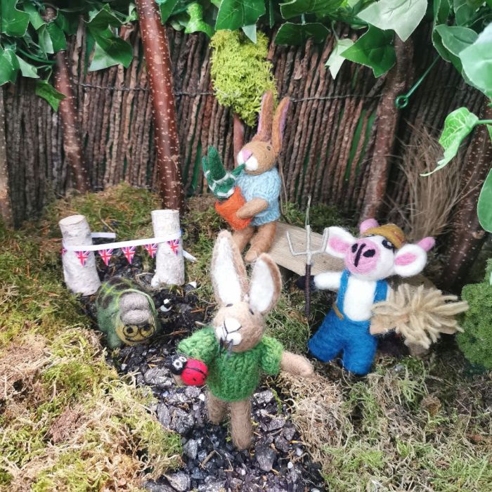 Bobby le lièvre coccinelle est tellement excité à l'idée de passer une journée dans le jardin ! Il porte son magnifique pull vert tricoté à la main, avec son adorable sac à dos coccinelle en feutre humide, complété par des mini décorations coccinelles en feutre à l'aiguille ! Il s'est même trouvé un ami, une coccinelle en feutre à l'aiguille est cousue dans sa petite patte.