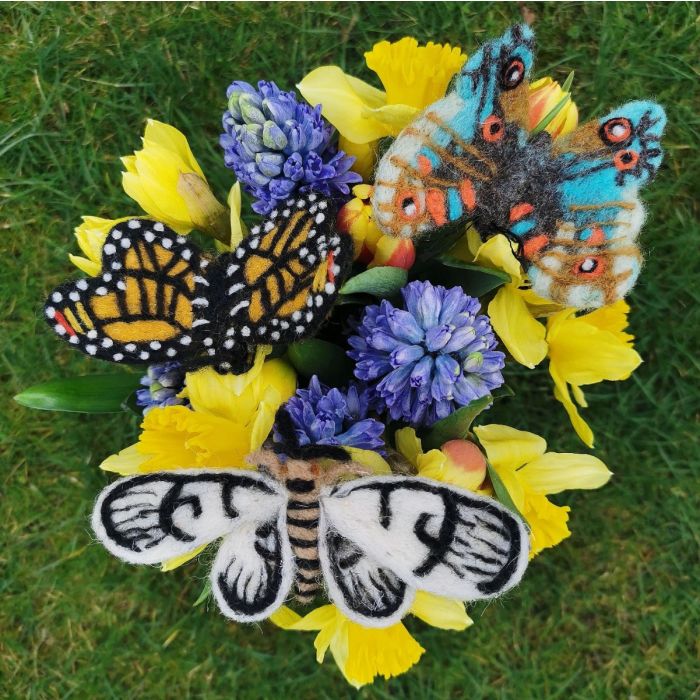 Papillon empereur en feutre fait à la main, décoration biodégradable à suspendre