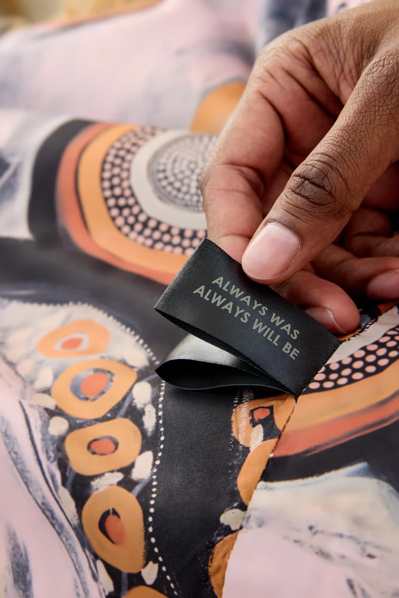 Le manteau Yawarr est un manteau mi-long avec des bordures en fausse peau de mouton et un corsage en suédine imprimé brillant. Ce modèle à la conception ludique présente les motifs de la grotte d'accouchement arquée et les coups de pinceau à fort impact de la peinture de Miimi & Jiinda, Girrwaa (Communauté). Yawarr est le mot Gumbaynggirr pour « danse ». Ce modèle présente deux poches avant, une doublure en fausse peau de mouton pour plus de chaleur et des bordures en fausse peau de mouton luxuriantes le long de l'ourlet et des poignets des manches. Le manteau Yawarr fait partie de la collaboration d'Unreal Fur avec la marque indigène australienne Miimi & Jiinda. En savoir plus ici. TAILLE ET COUPE
