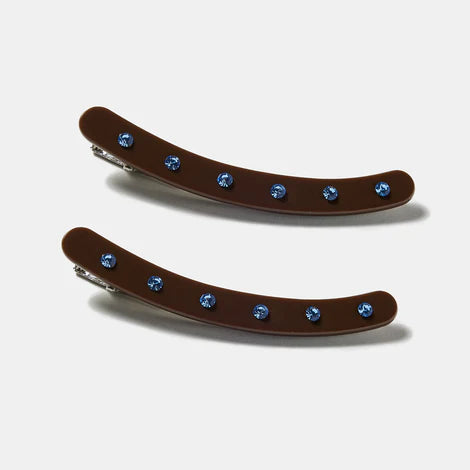 A pack of 2 large alligator style clips, accented with rhinestones. Small metal teeth provide a strong hold with no snag. Ideal for all hair types and lengths. Great for keeping your hair neatly tucked away.