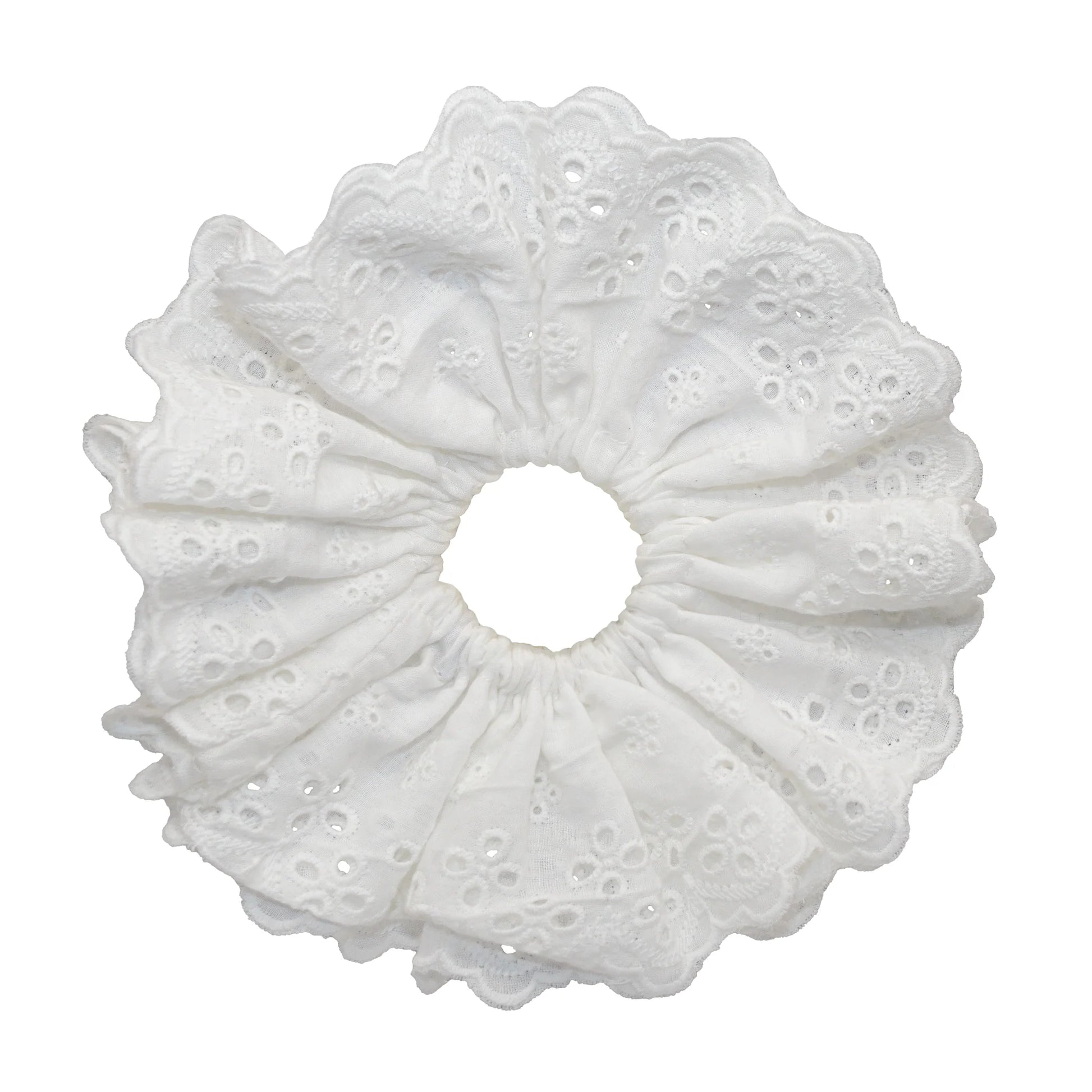 Simple and chic, our eyelet scrunchies feature a linen decorated design for added charm. A must-have statement accessory, they can be styled as bracelets or used to adorn any bun, completing your daytime look.