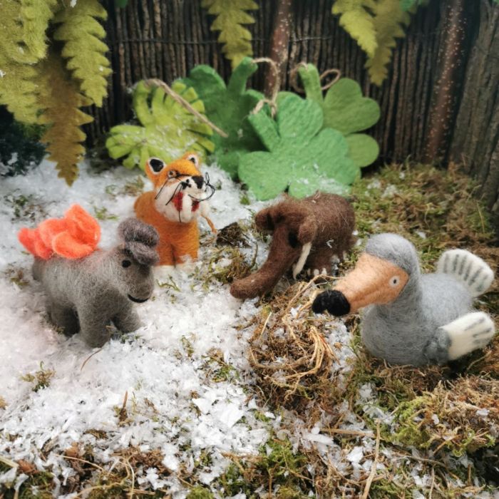 Doris the Dodo is back from the dead and she's never felt better, baby! Needle felted body and wings with embroidered detailing, with adjustable wire wrapped legs and talons. Felt may not go extinct, but it is biodegradable! Doris has been lovingly handcrafted in Nepal under fair trade working conditions using sustainable materials.