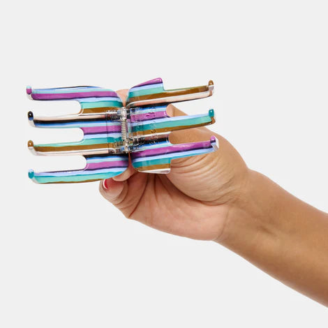 This medium sized claw is uniquely perfect for curly, textured, medium to thick hair. Large teeth give a gentle but firm hold, without crushing curls.